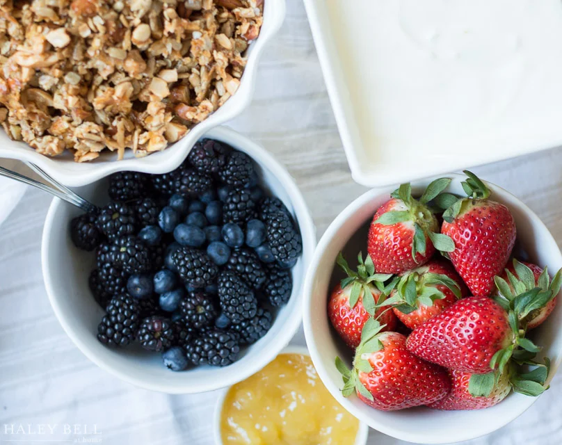 It's really fun to let your guests assemble their own bowl to see what kind of creations they come up with! I love to add all of the toppings to mine to get the sweetness from the fruit, slight tartness from the lemon curd and the salty sweet crunch from the granola.